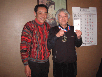 4月6日、ブルーラインCCに於いて、久しぶりの好天気の中、少数12名で行われました。当日本命の高壽さんが欠席で、斉藤会長がブッチギリの優勝と思いながら、午前中ハーフ42の好スコアーであがり、「昼食の食べすぎかも!」。午後は、スコアーがのびず、1打差で準優勝の私が原稿を書くはめになりました。4月度の優勝の栄冠を手にしたのは、40・38の78好成績があがった久保勝義さんがベスグロ優勝でした。おめでとうございます。残念ながら2,000円出さなければならないケタ会の優勝は、103であがった吉本健さんでした。来月は年1回の遠征ゴルフです・・・。楽しみましょう。高壽部長、原田副部長、お世話よろしくお願いします。増山 健治 記