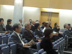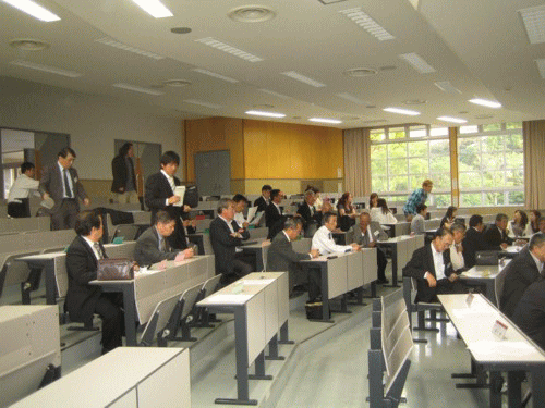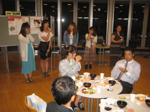 今回の移動例会は、5月19日(木)、山口福祉文化大学で、昨年に続きウルサン大学校の語学研修生を招いて行いました。昔懐かしい階段教室で、語学研修生を交えた学生気分の中で例会が始まり、今期初参加の野村市長の元気が出る挨拶と、大学を提供してくれた古賀学長の卓話「環境問題を考える」(地球温暖化対策と福島原発の放射線の人体への影響について)がありました。引き続き、お待ちかねの語学研修生との交流会の食事会でした。しゃれたフローリングとガラス張りの交流会館へ移動し、男子2名と女子15名合計17名の若い研修生とのおしゃべりに花が咲きました(自分の年を忘れて)。研修生の自己紹介では、ほとんどが萩の美しい自然と萩の人々の暖かさに満足した感想を述べていました。大学の中だけで学べない多くの事を、この様な形で学んでもらい、ウルサンと萩、韓国と日本との架け橋になってもらいたいと、ライオンの皆が願った事と思います。計画委員長 田辺 源忠 記