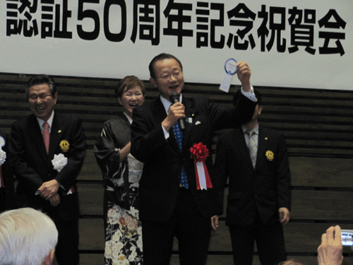 6月2日(日)に国際ホテル宇部にて宇部ときわライオンズクラブ認証50周年記念式典が開催され、篠原会長、竹下第二副地区ガバナー、林6R・YEC委員と私松尾で参加しました。宇部ときわライオンズクラブの心温まるおもてなしと歴史を感じさせられました。このたびの認証50周年を契機として、宇部ときわライオンズクラブがますます発展すよう心からお祈り致します。 PS.今期は、本当に周年行事の多い年でした。