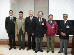 10月8日(火)はライオンズデーです。この日は、世界各地でライオンズクラブのメンバーによって奉仕活動が行われます。当クラブでは毎年、萩市内の何れかの場所で清掃活動を行っています。本年度は、服部会長より、若いメンバーに先輩方が残したアクティビティーの成果を知ってもらいたいという思いから、30年前に当クラブが指月公園外堀り周辺に植えた100本余りの梅の木付近を清掃することとなりました。実は、台風の接近により、前日の夕方までクラブ事務所に立て篭もり、開催するか否か悩んでおりました。中止の案内分まで用意した挙句、吉本幹事の「大丈夫やろ!」の一言により運を天に任せ(天気だけに・・・)強行することとしました。 当日、曇り空の中、36名のメンバーの参加によって、早朝より清掃活動を行うことができました。観光地ということもあり、日頃から管理されているせいかゴミはほとんどありませんでしたが、枯葉を集めたり道路沿いの萩の木を剪定したりと約30分間の清掃ののち、梅の木寄贈の記念碑の前で記念写真を撮って終了しました。ほとんどのメンバーがこの梅の木が当クラブのアクティビティーによって植えられたものということを知らなかったようで、先輩方の活動に敬意を表しますとともに、服部会長の思いも若いメンバーに十分伝わったのではないかと思います。当日、参加されたメンバーの皆様、早朝より御協力ありがとうございました。また、開催に背中を押して下さった吉本幹事に感謝致します。・・・帰って着替えて会社に出勤したら雨が降ってきました。あぶね〜!