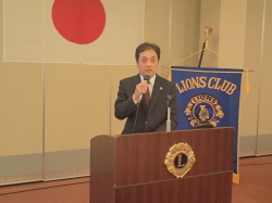廣兼会長に卓話の機会を頂戴しお礼申し上げます。それでは、私の26年に及ぶライオンズライフを語りたいと思います。まず初めに、吉井さん(→久保さん)、篠原さん(→山縣さん)あなた方はスポンサーを覚えていらっしゃいますか?私は27年前に、JCを卒会後すぐに他団体より勧誘されました。その前に現メンバーからお誘いを受けていたので改めてLCへの入会を希望しました。しかしながら、当時は「1業種・1名」という慣例により入会が困難でした。その中であるメンバーより強く推薦を受け入会することがかないました。その方が私のスポンサーであり今日に至ります。推薦して頂いた事で恥を欠かせる事の無いよう、思いをもって26年間活動してきました。スポンサーは新入会員を入会させる為にいろいろな努力をされています。当然ながら皆さんは選ばれて入会するわけですから、責任感をもって活動して下さい。在籍中一番光栄に思った事は、ZCの職に就いているとき竹下第2副地区ガバナーを誕生させた事です。来年4月には、第61回年次大会を控えています。前夜祭担当部長として、おもてなしの心で「萩」らしさのある「前夜祭」を作りたいと思います。ご協力よろしくお願いします。最後に、若いメンバーとの交流も多く、良いアドバイザーとなることでこれからのライオンズライフを大切にしたいと思います。ありがとうございました。