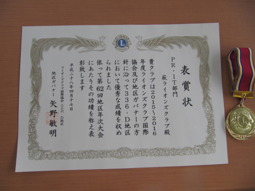 | 3月第1例会において国際協会よりアワードの贈呈がありました。 | |
